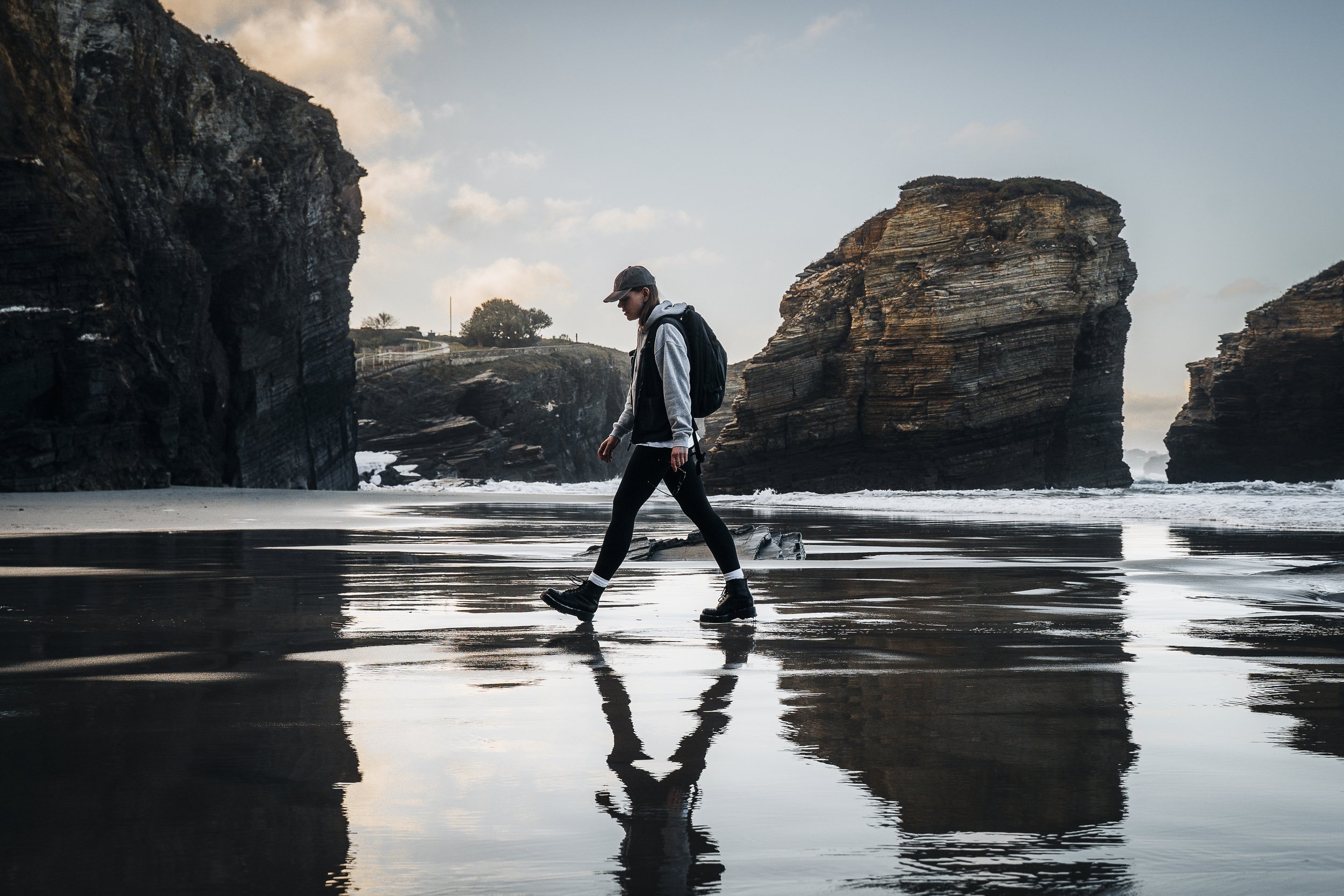 Rucksäcke sind auf Reisen unverzichtbar – besonders an der rauen Nordküste Spaniens. Für Heimplanet durfte ich einen ihrer Rucksäcke mitnehmen und vor Ort in seiner natürlichen Umgebung in Szene setzen. Die Kombination aus stürmischer Küste, dramatischem Licht und der praktischen Funktionalität des Rucksacks bot die perfekte Grundlage für authentische und ausdrucksstarke Aufnahmen, die sowohl das Design als auch die Alltagstauglichkeit des Produkts eindrucksvoll zeigen.